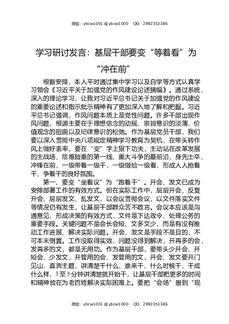 学习研讨发言:基层干部要变“等着看”为“冲在前”.docx