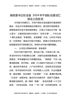 镇党委书记在全县2024年干部队伍建设汇报会上的发言.docx