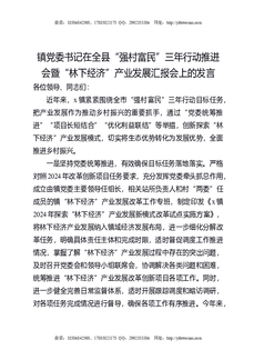 镇党委书记在全县“强村富民”三年行动推进会暨“林下经济”产业发展汇报会上的发言.docx