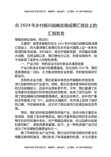 在2024年乡村振兴战略实施成果汇报会上的汇报发言.docx