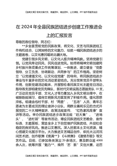 在2024年全县民族团结进步创建工作推进会上的汇报发言.docx