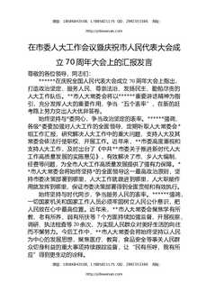 在市委人大工作会议暨庆祝市人民代表大会成立70周年大会上的汇报发言.docx