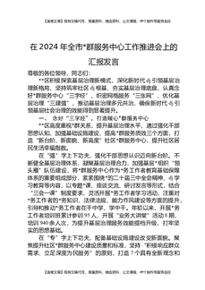 在2024年全市党群服务中心工作推进会上的汇报发言.docx