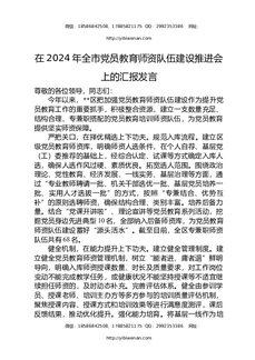 在2024年全市党员教育师资队伍建设推进会上的汇报发言.docx