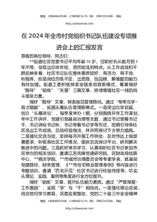 在2024年全市村党组织书记队伍建设专项推进会上的汇报发言.docx