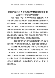 在传达学习习近平总书记在甘肃考察重要指示精神会议上的发言提纲.docx
