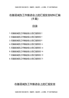 在基层减负工作推进会上的汇报发言材料汇编(8篇).docx