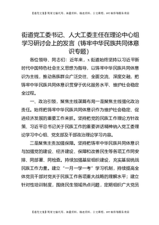 街道党工委书记、人大工委主任在理论中心组学习研讨会上的发言(铸牢中华民族共同体意识专题).docx
