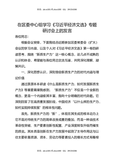 在区委中心组学习《总书记经济文选》专题研讨会上的发言.docx