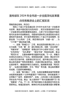 宣传部在2024年全市进一步全面深化改革重点任务推进会上的汇报发言.docx