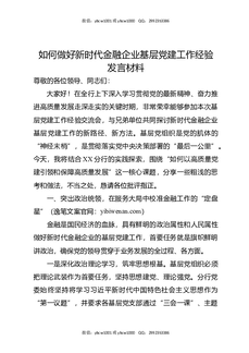 如何做好新时代金融企业基层党建工作经验发言材料.docx