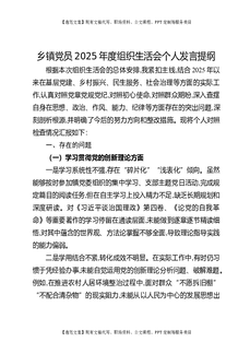 乡镇党员2025年度组织生活会个人发言提纲.docx