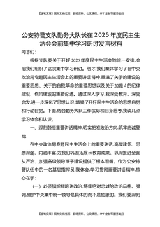 公安特警支队勤务大队长在2025年度民主生活会会前集中学习研讨发言材料.docx