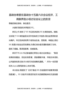 县政协常委在县政协十五届六次会议经济、工商联界别小组讨论会议上的发言.docx