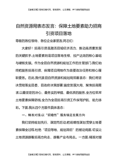 自然资源局表态发言:保障土地要素助力招商引资项目落地.docx