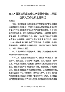 在XX县第三季度安全生产委员会暨森林草原防灭火工作会议上的讲话.docx
