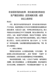 在全区防汛防台抗旱、防灾减灾救灾和安全生产暨区安委会(区防减救灾委)成员会议上的讲话.docx