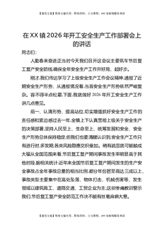 在XX镇2026年开工安全生产工作部署会上的讲话.docx