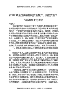 在XX镇全国两会期间安全生产、消防安全工作部署会上的讲话.docx