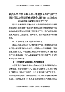 安委会主任在2026年一季度安全生产治本攻坚阶段性总结暨深化部署会讲话稿:总结成效筑牢底座,精准施策守护平安.docx