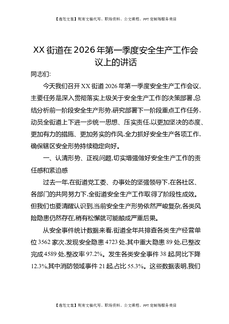 XX街道在2026年第一季度安全生产工作会议上的讲话.docx