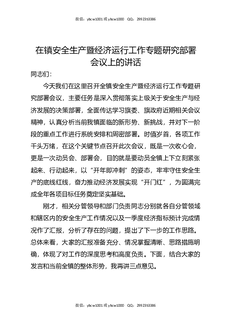 在镇安全生产暨经济运行工作专题研究部署会议上的讲话.docx