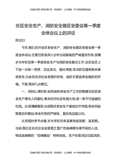 在区安全生产消防安全暨区安委会第一季度全体会议上的讲话.docx