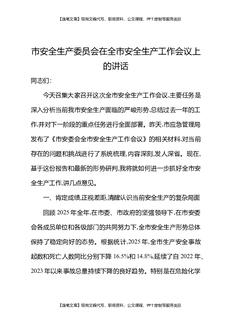 市安全生产委员会在全市安全生产工作会议讲话.docx