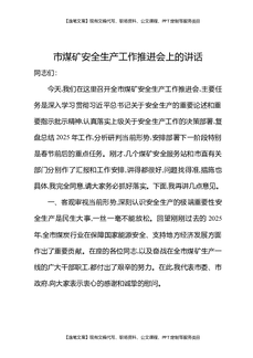 市煤矿安全生产工作推进会上的讲话.docx