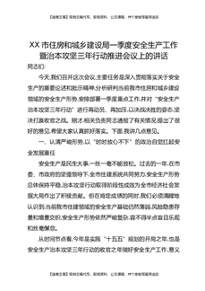 XX市住房和城乡建设局一季度安全生产工作暨治本攻坚三年行动推进会议上的讲话.docx