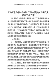 XX街道办事处2026年第一季度安全生产大检查工作方案.docx