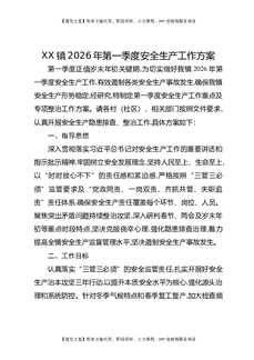 XX镇2026年第一季度安全生产工作方案.docx