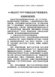 XX煤业关于2025年度安全生产体系建设与实践情况的报告.docx