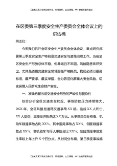 在区委第三季度安全生产委员会全体会议上的讲话稿.docx
