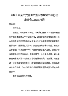 2025年全市安全生产暨治本攻坚三年行动推进会上的主持词.docx