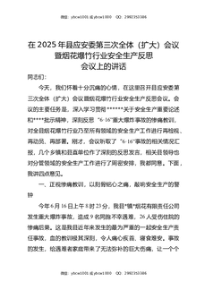 在2025年县应安委第三次全体(扩大)会议暨烟花爆竹行业安全生产反思会议上的讲话.docx
