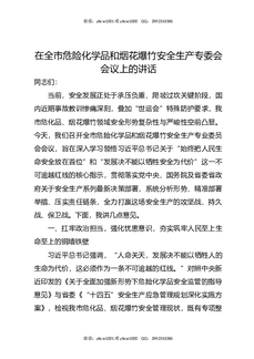 在全市危险化学品和烟花爆竹安全生产专委会会议上的讲话2.docx