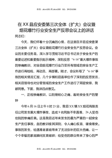 在XX县应安委第三次全体(扩大)会议暨烟花爆竹行业安全生产反思会议上的讲话.docx