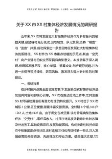 关于XX市XX村集体经济发展情况的调研报告.docx