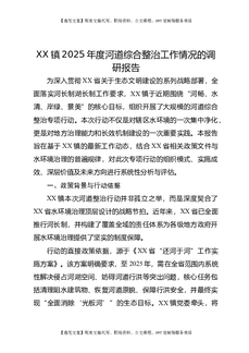 XX单位关于XX镇2025年度河道综合整治工作情况的调研报告.docx