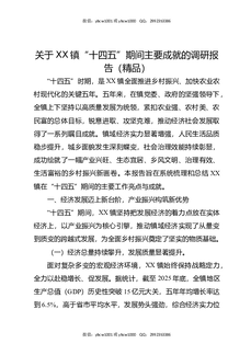 关于XX镇“十四五”期间主要成就的调研报告(精品).docx