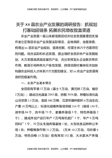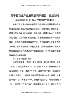 关于XX县农业产业发展的调研报告:抓规划打基础延链条,拓展农民增收致富渠道.docx