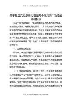 关于基层党组织着力增强两个作用两个功能的调研报告.docx