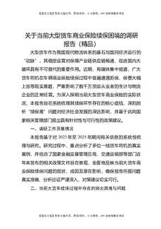 关于当前大型货车商业保险续保困境的调研报告(精品).docx