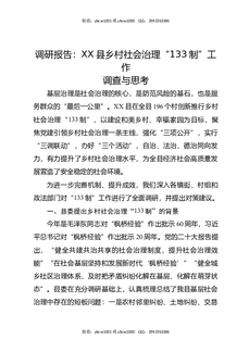 调研报告:XX县乡村社会治理“133制”工作调查与思考.docx