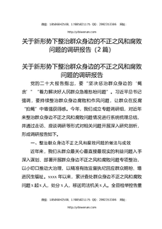 关于新形势下整治群众身边的不正之风和腐败问题的调研报告(2篇).docx