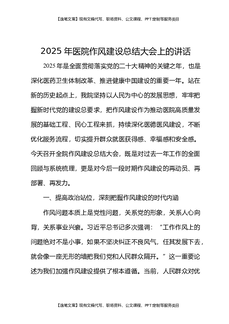 2025年医院作风建设总结大会上的讲话.docx