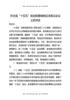 在全县“十五五”规划纲要编制征求意见会议上的讲话.docx