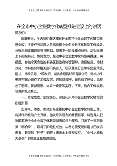 在全市中小企业数字化转型推进会议上的讲话.docx
