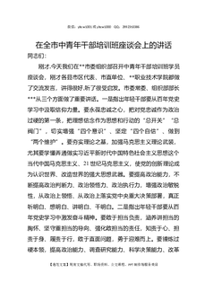 在全市中青年干部培训班座谈会上的讲话.docx